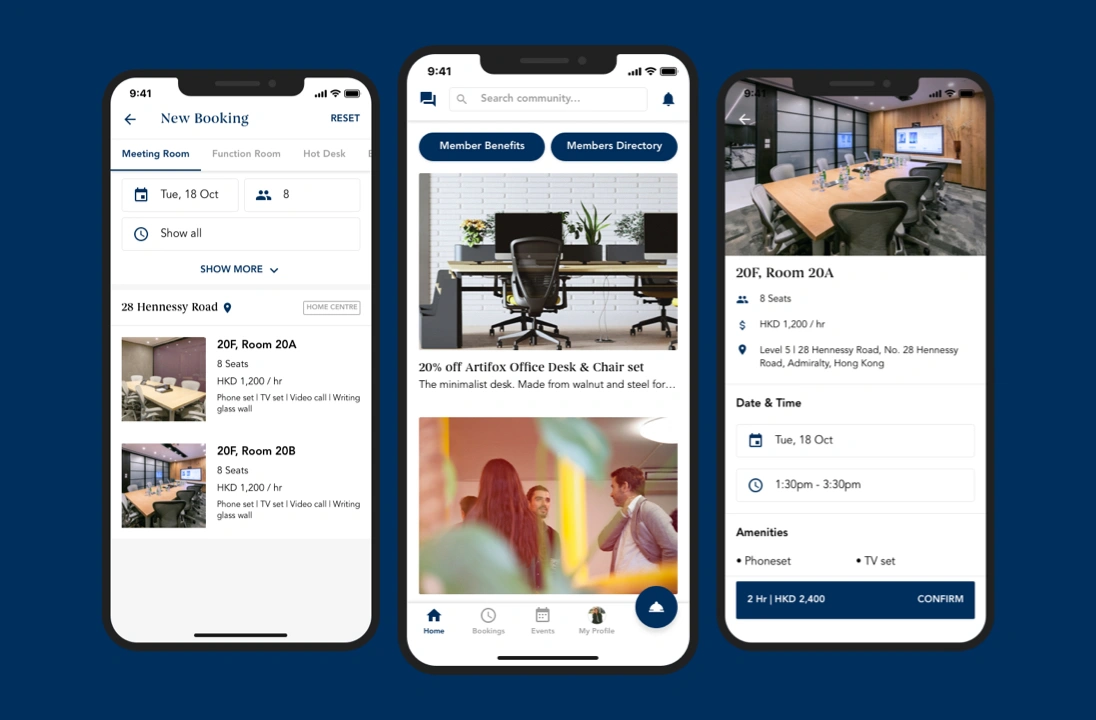 Mobile app for serviced offices