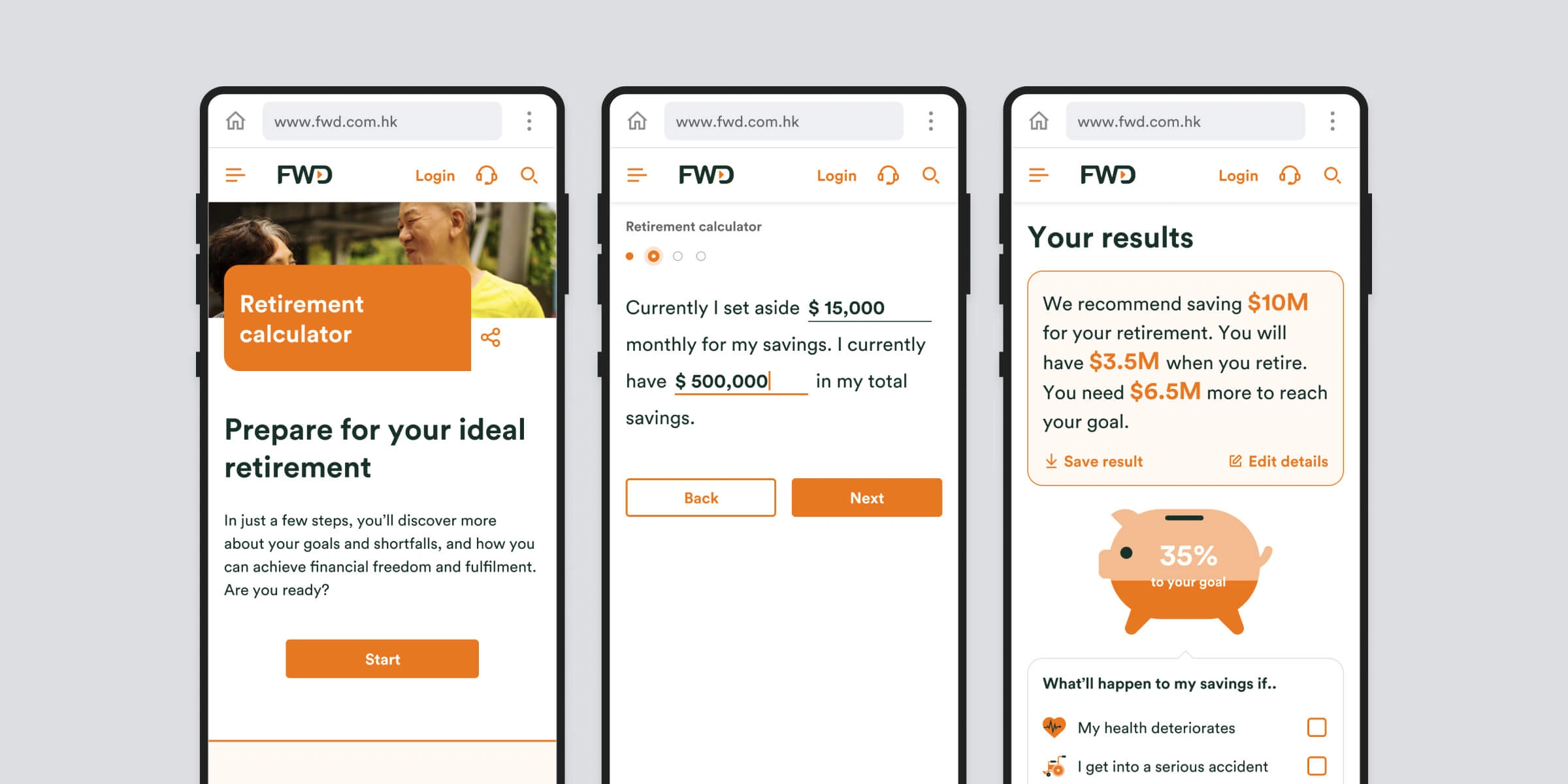 Our Group Digital team at FWD (the team that I belong to) proposed to have a new lead generation tool. A retirement calculator that can identify protection gaps for customers, and capture leads for agents.