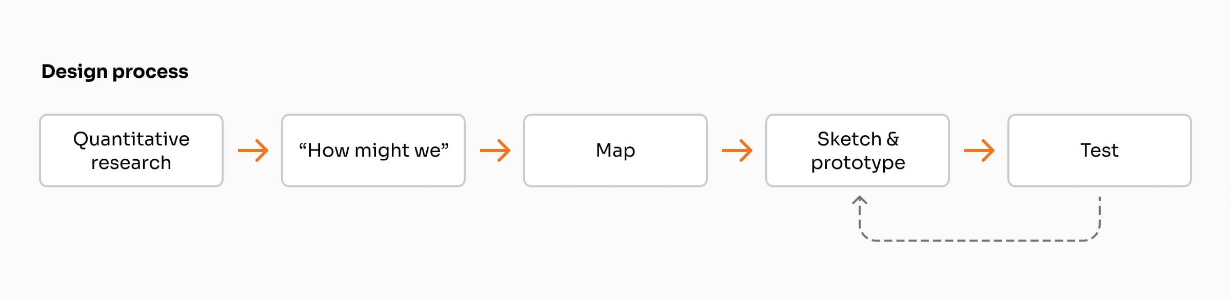 The design process I took for this project is a modified and condensed version of the Design Sprint process; Get quantitative data, create "How Might We" based on data, map out and target a problem area we want to solve, sketch and prototype, and test our assumptions with users.