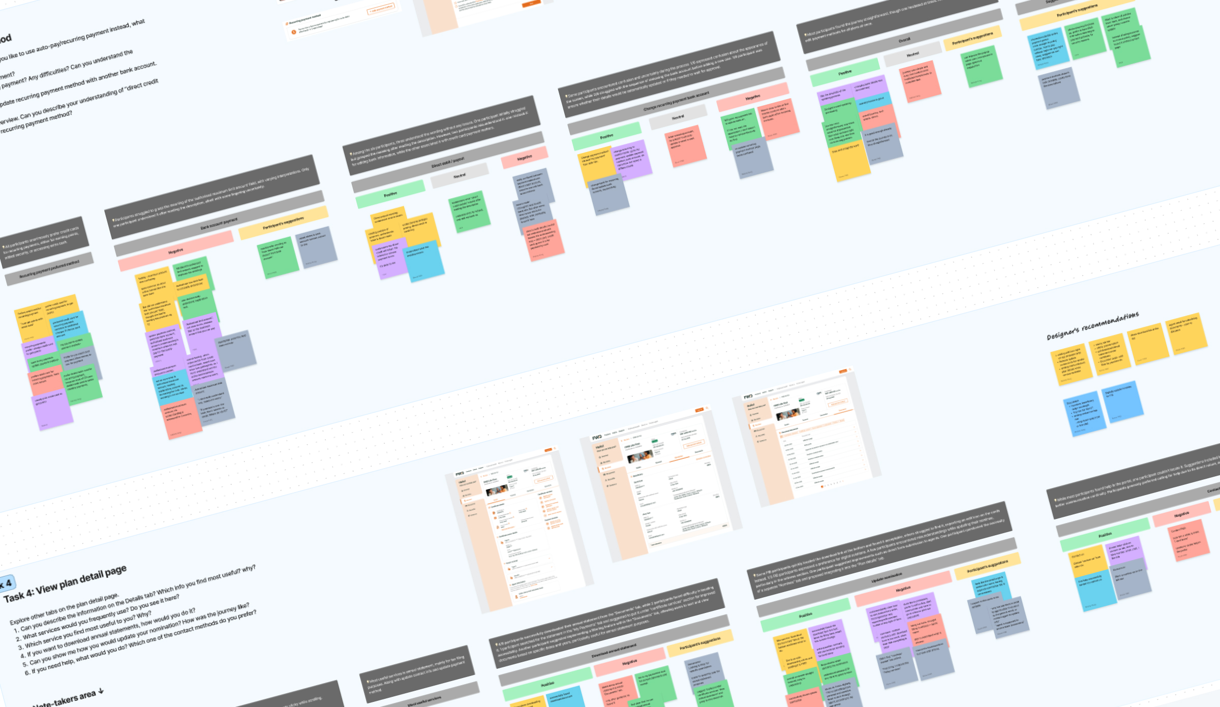 After a successful dry run with our team and recruiting six participants, we proceeded to test our prototype. I moderated most of the sessions, as well as giving the other designer a chance to moderate for the first time for her to learn as part of my mentoring. We alternated roles as moderators and note-takers during the remote sessions. Each test began with pre-testing questions to understand the participants’ experiences and beliefs, followed by testing the prototype to identify usability issues and how they felt with the journeys, and concluded with wrap up questions to capture their overall impressions and suggestions. One thing I Iike to do is look for existing user habits and workarounds mentioned during the user test, as these often reveal opportunities for innovative enhancements to the user experience.